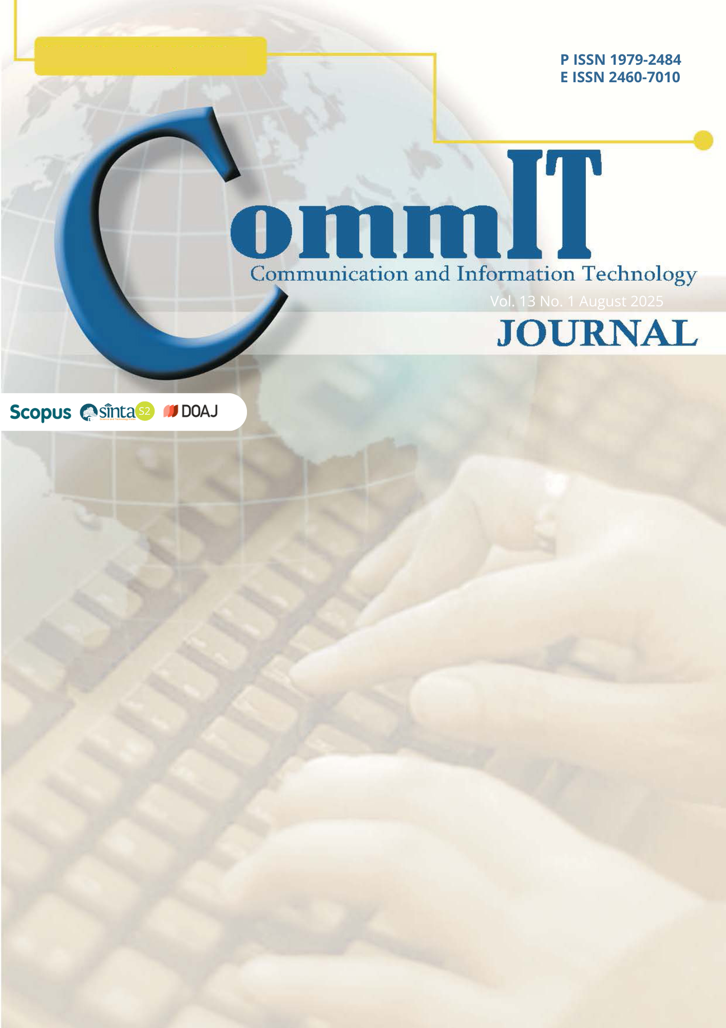 CommIT is a semiannual journal, published in May and October. Journal of Communication and Information Technology focuses on various issues spanning in Computer Engineering, Computer Science, and Information System. CommIT has been accredited by the Ministry of Research, Technology and Higher Education under the decree number 169/E/KPT/2024 and has been indexed and abstracted by Scopus, ASEAN Citation Index, Directory of Open Access Journals (DOAJ), Science and Technology Index 1 (SINTA 1), Indonesia OneSearch, Academic Research Index (Research BIB), Garda Rujukan Digital (Garuda), Bielefeld Academic Search Engine (BASE), World Catalogue (WorldCat), Google Scholar, and Indonesian Research Repository (Neliti).