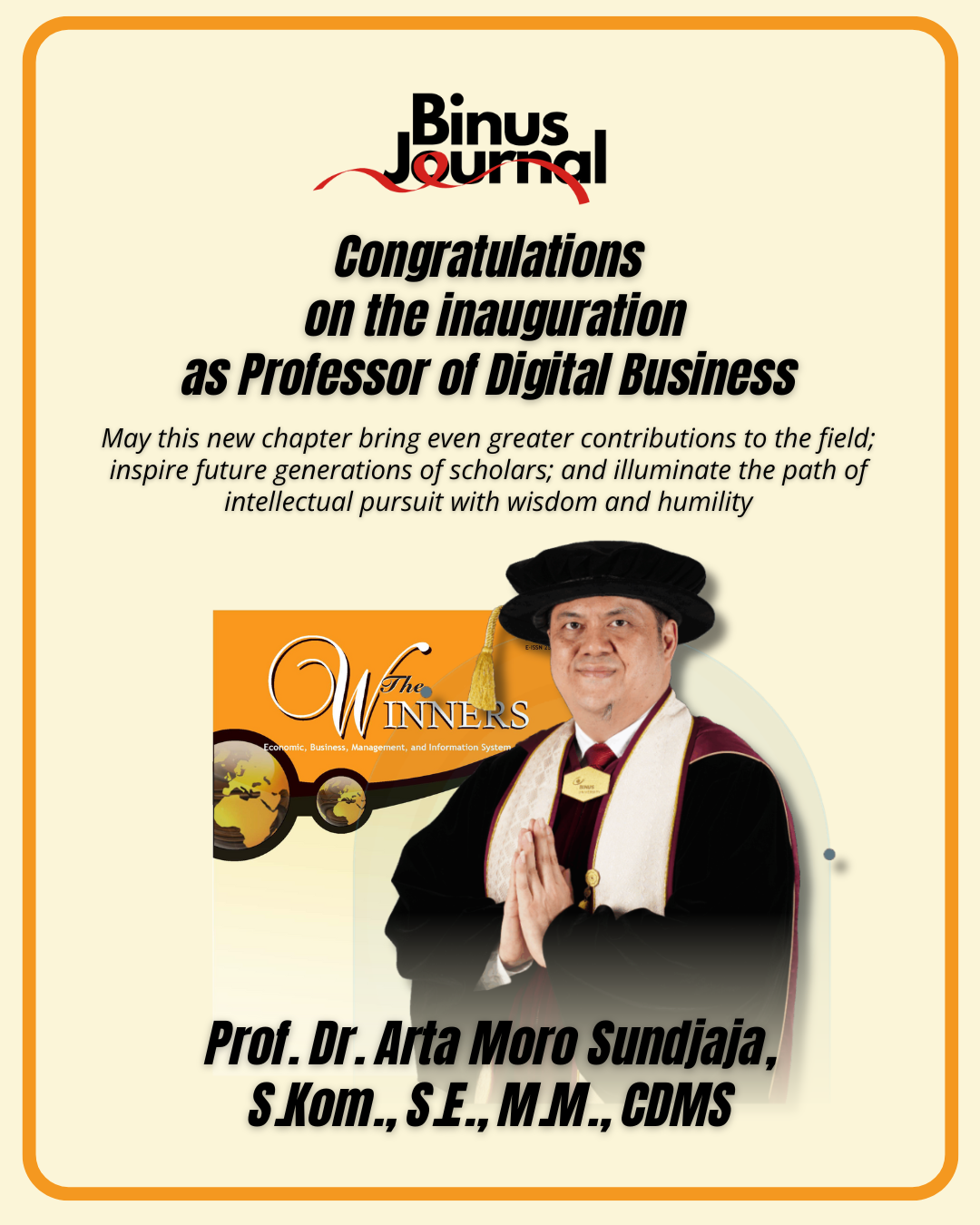 Announcement: Inauguration of Editor in Chief Journal the Winners, Prof. Dr. Arta Moro Sundjaja as Professor of Digital Business